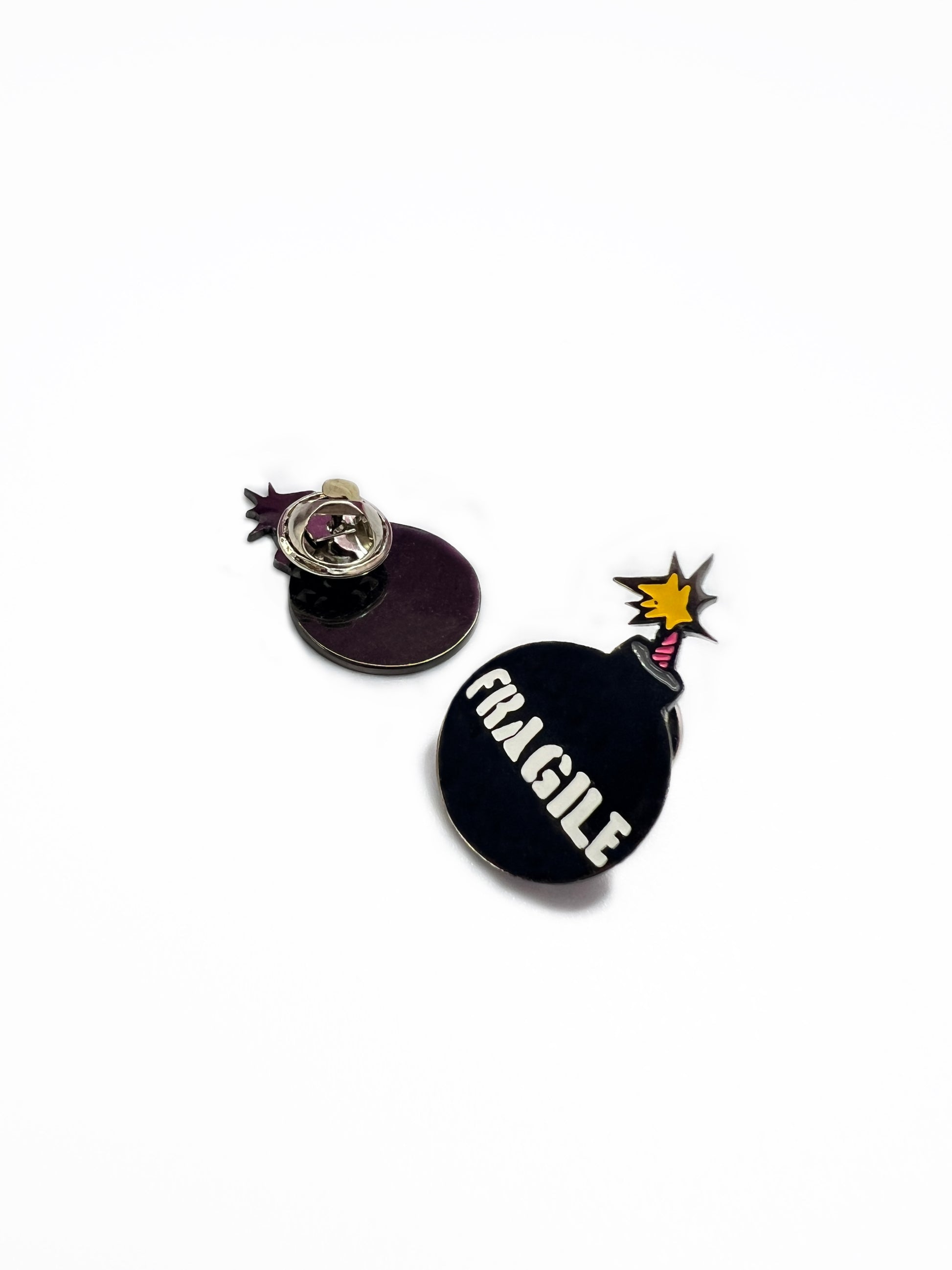 Highlight the delicate balance of strength and fragility with our Fragile Bomb Enamel Pin. This unique design is a powerful statement piece, perfect for showcasing your complex personality.